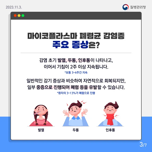 처음엔 단순 감기인 줄 알고 방치했다가 일주일 후 마이코플라스마 확진으로 꽤 오래 고생하셨을 겁니다. 네, 제가 그랬어요.