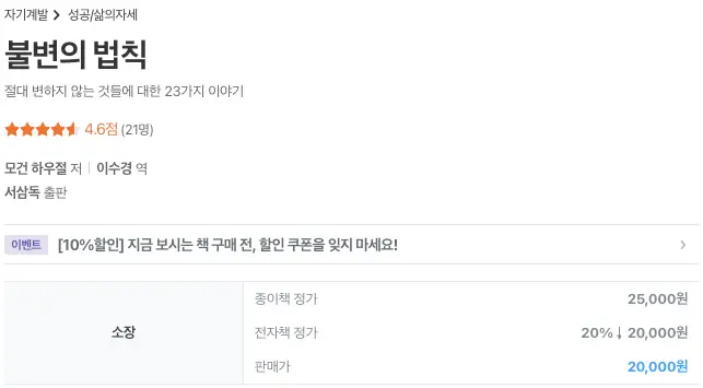 《불변의 법칙》은 모건 하우절의 최신작으로, 돈과 심리를 넘어 인간 삶의 전반에 걸친 근본적인 원칙들을 탐구합니다. 전 세계적으로 극찬을 받으며 아마존과 뉴욕타임스 베스트셀러 목록에 오른 이 책은 다양한 분야에서의 인사이트를 제공합니다.