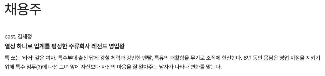 주류회사 영업왕 용주(김세정 분)와 브루어리 대표 민주(이종원 분)의 설렘 가득한 로맨스를 그린 작품입니다.