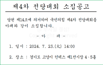 이번 국민의힘 전당대회는 향후 당의 방향성과 리더십을 결정짓는 중요한 행사입니다. 많은 관심과 참여 부탁드립니다.